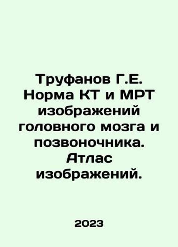 Trufanov H.E. Norm CT and MRI images of the brain and spine. An atlas of images. In Russian /Trufanov G.E. Norma KT i MRT izobrazheniy golovnogo mozga i pozvonochnika. Atlas izobrazheniy. 4th edition, amended and supplemented. SPb ELBI-SPb 2023 144 pp. We have thousands of titles and often several copies of each title may be available. Please feel free to contact us for a detailed description of the copies available. SKUalb52c104bfdca4149b.