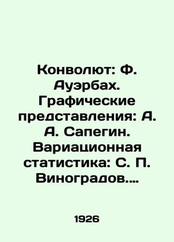 Convolutee: F. Auerbach. Graphic representations: A. A. Sapegin. Variational statistics: S. P. Vinogradov. Basis of the theory of determinants. In Russian /Konvolyut: F. Auerbakh. Graficheskie predstavleniya: A. A. Sapegin. Variatsionnaya statistika: S. P. Vinogradov. Osnovaniya teorii determinantov. M-L GIZ 1925, 1928, 1926 115 and 108 and 103 p. We have thousands of titles and often several copies of each title may be available. Please feel free to contact us for a detailed description of the copies available. SKUalb531b34085adfd9ad.