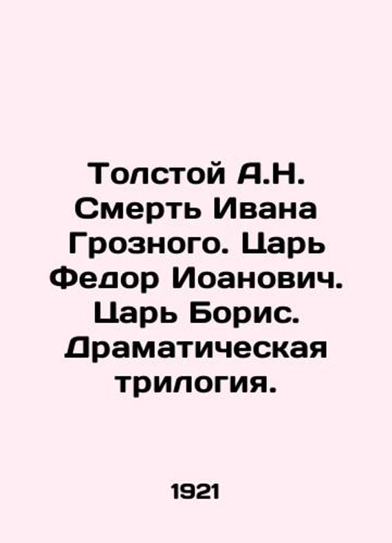 Tolstoy A.N. The Death of Ivan the Terrible. Tsar Fedor Ioanovich. Tsar Boris. A Dramatic Trilogy. In Russian /Tolstoy A.N. Smert Ivana Groznogo. Tsar Fedor Ioanovich. Tsar Boris. Dramaticheskaya trilogiya. Series: A book for all. Berlin. Thought. 1921. We have thousands of titles and often several copies of each title may be available. Please feel free to contact us for a detailed description of the copies available. SKUalb533c20d57c8e4774.