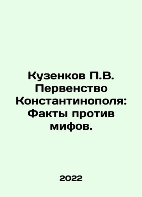 P. V. Couzenkov The Primacy of Constantinople: Facts vs. Myths. In Russian /Kuzenkov P.V. Pervenstvo Konstantinopolya: Fakty protiv mifov. M.2022. 192 p. We have thousands of titles and often several copies of each title may be available. Please feel free to contact us for a detailed description of the copies available. SKUalb535fd9828c9aacc8.