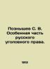 Poznishev S. V. Special part of Russian criminal law. In Russian (ask us if in doubt)/Poznyshev S. V. Osobennaya chast' russkogo ugolovnogo prava. Short description: In Russian (ask us if in doubt).Comparative sketch of the most important departments of the special part of the old and new regulations. 3rd edition amended and supplemented by A. A. Levenson in 1912. 499 VIIc. Poznishev S.V. (1870-1943) Russian lawyer professor of Imp. Moscow University. Master of International Law (1901). Doctor of Criminal Law (1906). Extraordinary (1909) Ordinary Professor of Criminal Law and Criminal Procedure of the Faculty of Law (1912-1917). Vice-Rector of Moscow University (1915-1917). Member of the Legal Testing Commission under the IMU (1914) We have thousands of titles and often several copies of each title may be available. Please feel free to contact us for a detailed description of the copies available. SKUalb5388651a24eb9df3
