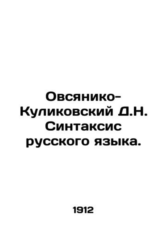 Ovsyaniko-Kulikovsky D.N. Syntax of the Russian language. In Russian /Ovsyaniko-Kulikovskiy D.N. Sintaksis russkogo yazyka. Second edition, amended and supplemented. St. Petersburg 1912. We have thousands of titles and often several copies of each title may be available. Please feel free to contact us for a detailed description of the copies available. SKUalb538ae7ff800749d7.