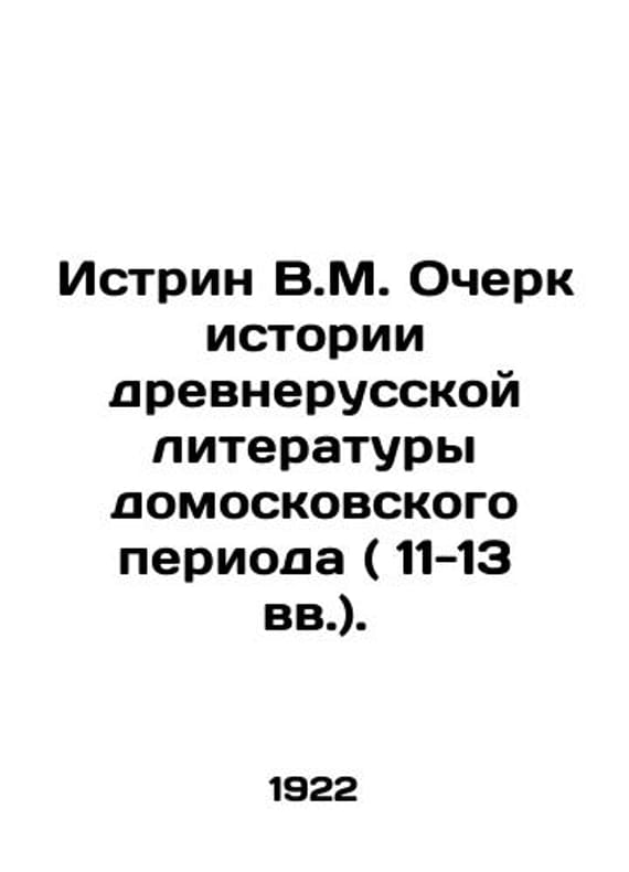 Istrin V.M. Essay on the History of Old Russian Literature in the Pre-Moscow Period (11th-13th Centuries). In Russian /Istrin V.M. Ocherk istorii drevnerusskoy literatury domoskovskogo perioda ( 11-13 vv.). Petrograd. Science and School. 1922. We have thousands of titles and often several copies of each title may be available. Please feel free to contact us for a detailed description of the copies available. SKUalb53c31c1a02baeda8.
