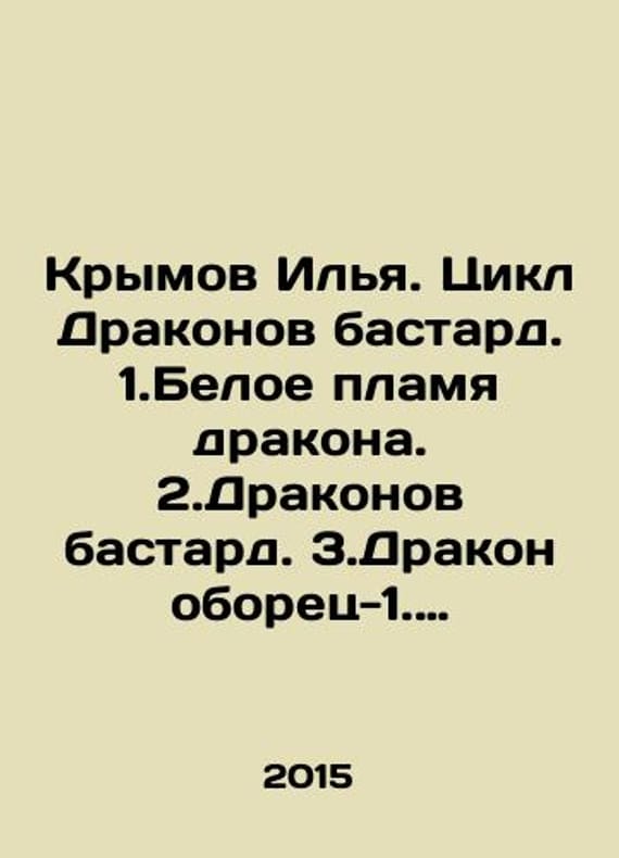 Krymov Ilya. The cycle of dragons bastards. 1. White flame of dragons. 2. Dragon bastards. 3. Dragon-wrestler-1. 4. Dragon-wrestler-2. In Russian /Krymov Ilya. Tsikl Drakonov bastard. 1.Beloe plamya drakona. 2.Drakonov bastard. 3.Drakonoborets-1. 4.Drakonoborets-2. Series: A Fantastic Action Movie. M. Alpha-book 2015-2017. We have thousands of titles and often several copies of each title may be available. Please feel free to contact us for a detailed description of the copies available. SKUalb53c464e68e7f9a70.