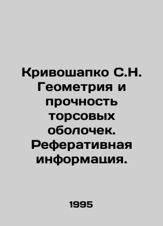 Krivoshapko S.N. Geometry and strength of torso shells. Abstract information. In Russian /Krivoshapko S.N. Geometriya i prochnost torsovykh obolochek. Referativnaya informatsiya. M Association of Building Institutes 1995. We have thousands of titles and often several copies of each title may be available. Please feel free to contact us for a detailed description of the copies available. SKUalb53e4fb08ab13a5d9.