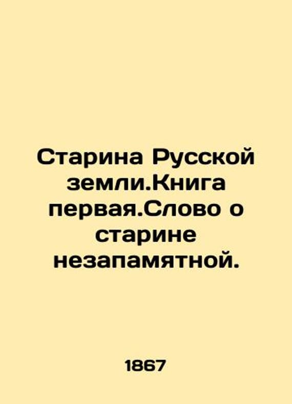 Old woman of the Russian land. The book is the first. The word about old age is unforgettable. In Russian /Starina Russkoy zemli.Kniga pervaya.Slovo o starine nezapamyatnoy. M. 1867g. 36p. We have thousands of titles and often several copies of each title may be available. Please feel free to contact us for a detailed description of the copies available. SKUalb53edb6f49590faae.