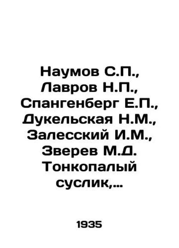 Naumov S.P., Lavrov N.P., Spangenberg E.P., Dukelskaya N.M., Zalessky I.M., Zverev M.D. Thin worm, dormouse regiment, blind, chipmunk. In Russian /Naumov S.P., Lavrov N.P., Spangenberg E.P., Dukelskaya N.M., Zalesskiy I.M., Zverev M.D. Tonkopalyy suslik, sonya-polchok, slepysh, burunduk. M.-L. 1935. 104 p. We have thousands of titles and often several copies of each title may be available. Please feel free to contact us for a detailed description of the copies available. SKUalb544bf86fad5b1f9d.