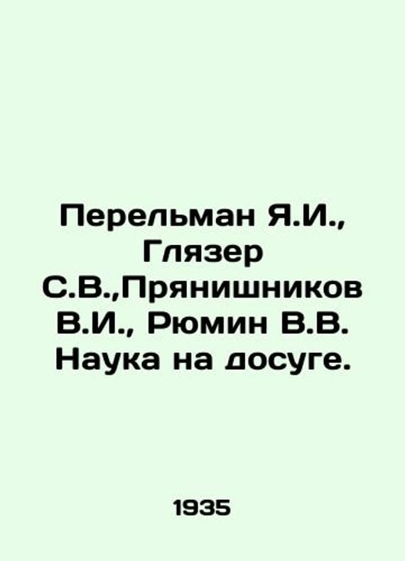 Perelman Ya.I., Glazer S.V., Pryanishnikov V.I., Ryumin V.V. Science at leisure. In Russian /Perelman Ya.I., Glyazer S.V., Pryanishnikov V.I., Ryumin V.V. Nauka na dosuge. Compilation of entertaining tasks, puzzles, tricks, games from physics, mathematics, geography, astronomy, chemistry, L. The Young Guard 1935. 218s. We have thousands of titles and often several copies of each title may be available. Please feel free to contact us for a detailed description of the copies available. SKUalb54656b7114f1995c.