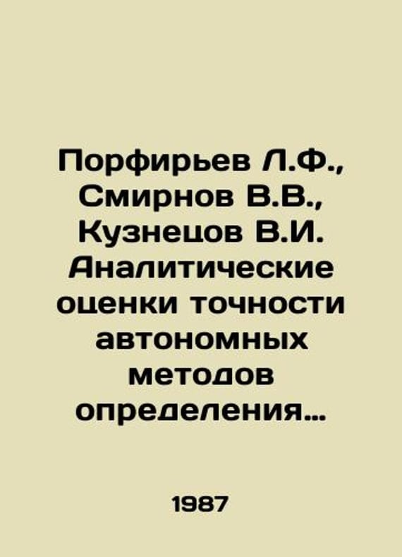 Porfiriev L.F., Smirnov V.V., Kuznetsov V.I. Analytical estimates of the accuracy of autonomous orbital determination methods. In Russian /Porfirev L.F., Smirnov V.V., Kuznetsov V.I. Analiticheskie otsenki tochnosti avtonomnykh metodov opredeleniya orbit. M., Machine Building 1987. We have thousands of titles and often several copies of each title may be available. Please feel free to contact us for a detailed description of the copies available. SKUalb54d87a685edca1a4.