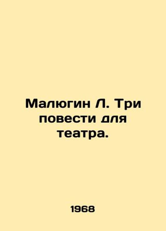 L. Malyugin Three Tales for the Theatre. In Russian /Malyugin L. Tri povesti dlya teatra. M Sov. writer 1968. We have thousands of titles and often several copies of each title may be available. Please feel free to contact us for a detailed description of the copies available. SKUalb55629cbae8b3ba78.
