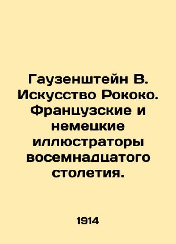 Gauzenstein W. The Art of Rococo. eighteenth-century French and German illustrators. With 90 illustrations from copper engravings, etchings, and drawings In Russian /Gauzenshteyn V. Iskusstvo rokoko. Frantsuzskie i nemetskie illyustratory vosemnadtsatogo stoletiya. S 90 illyustratsiyami s gravyur na medi, ofortov i risunkov Moscow Contemporary Problems of 1914. 125, 3 p. We have thousands of titles and often several copies of each title may be available. Please feel free to contact us for a detailed description of the copies available. SKUalbdd2a9162001155d1.