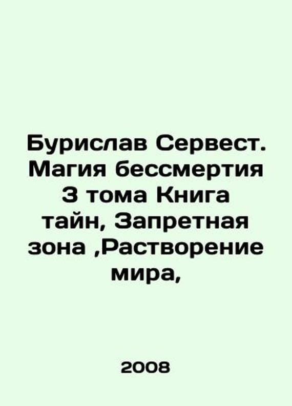 Burislav Servest. The Magic of Immortality Volume 3 The Book of Secrets, The Forbidden Zone, The Dissolution of the World, In Russian /Burislav Servest. Magiya bessmertiya 3 toma Kniga tayn, Zapretnaya zona,Rastvorenie mira, Penza Golden Ratio 2008-2009 436 424 600s. We have thousands of titles and often several copies of each title may be available. Please feel free to contact us for a detailed description of the copies available. SKUalb558f27f21bbe5991.