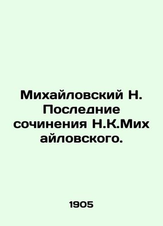 N. Mikhailovskys Last Works by N. K. Mikhailovsky. In Russian /Mikhaylovskiy N. Poslednie sochineniya N.K.Mikhaylovskogo. Volume One. St. Petersburg, edition of the journal Russian Wealth, 1905, 490 p. We have thousands of titles and often several copies of each title may be available. Please feel free to contact us for a detailed description of the copies available. SKUalb55923e6022c839ef.