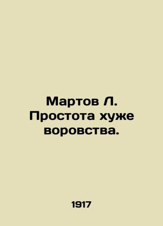 March L. Simplicity is worse than theft. In Russian /Martov L. Prostota khuzhe vorovstva. Petrograd. Socialist. 1917. 32 p. We have thousands of titles and often several copies of each title may be available. Please feel free to contact us for a detailed description of the copies available. SKUalb55ba907728aa9d9b.