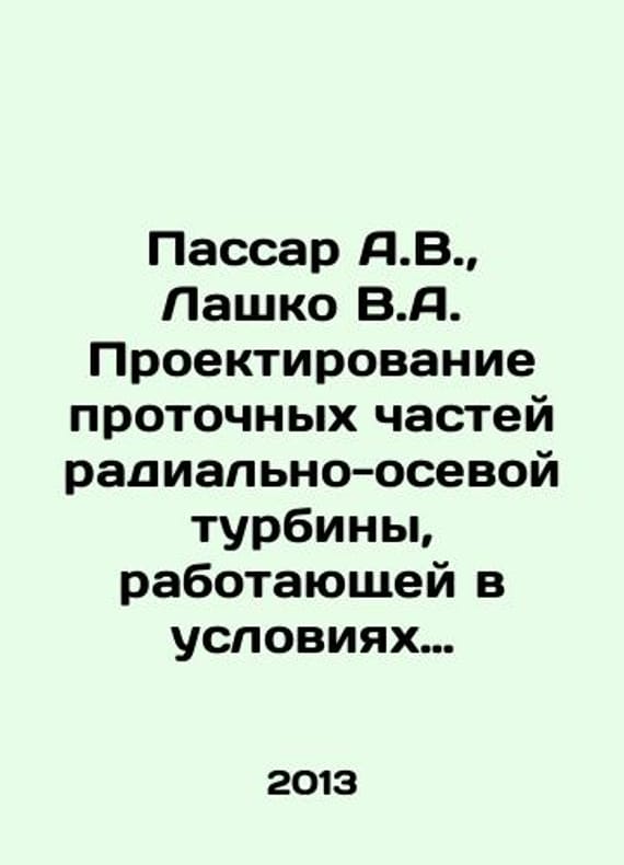 Passar A.V., Lashko V.A. Designing the flow-through parts of a radial-axial turbine operating in non-stationary flow conditions. In Russian /Passar A.V., Lashko V.A. Proektirovanie protochnykh chastey radialno-osevoy turbiny, rabotayushchey v usloviyakh nestatsionarnogo potoka. Vladivostok Dalnauka 2013. 289 p. We have thousands of titles and often several copies of each title may be available. Please feel free to contact us for a detailed description of the copies available. SKUalb55c448b562fe64ab.