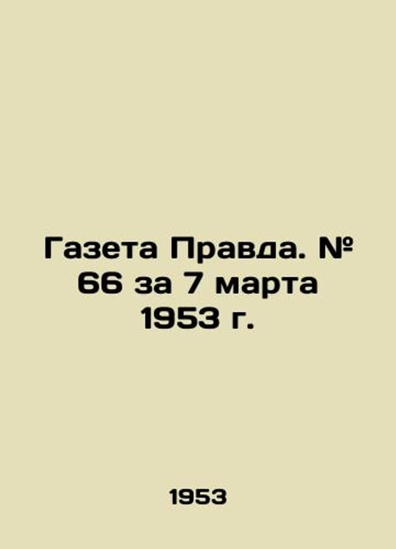 Newspaper Pravda. # 66 for March 7, 1953. In Russian /Gazeta Pravda. # 66 za 7 marta 1953 g. Organ of the Central Committee of the Communist Party of the Soviet Union. Moscow: Pravda. 1953. 4 p. Very large format, 60x42 sm. We have thousands of titles and often several copies of each title may be available. Please feel free to contact us for a detailed description of the copies available. SKUalb55ce9f19baa5487a.