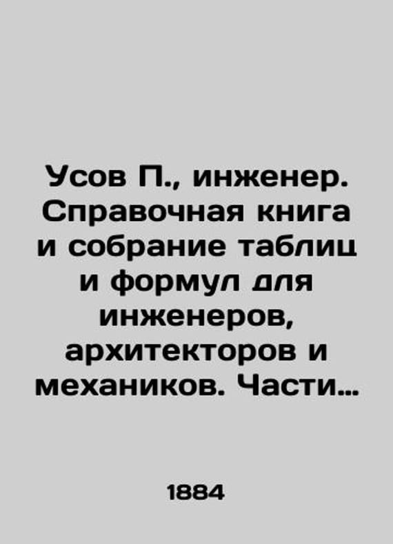 P. moustache engineer. Reference book and collection of tables and formulas for engineers architects and mechanics. Parts I II. In Russian (ask us if in doubt)/Usov P. inzhener. Spravochnaya kniga i sobranie tablits i formul dlya inzhenerov arkhitektorov i mekhanikov. Chasti I II.. M. S-Pb. Edition by Comrade M. O. Wolf 1884. 1248 s. SKUalb55d6c59758f09783.