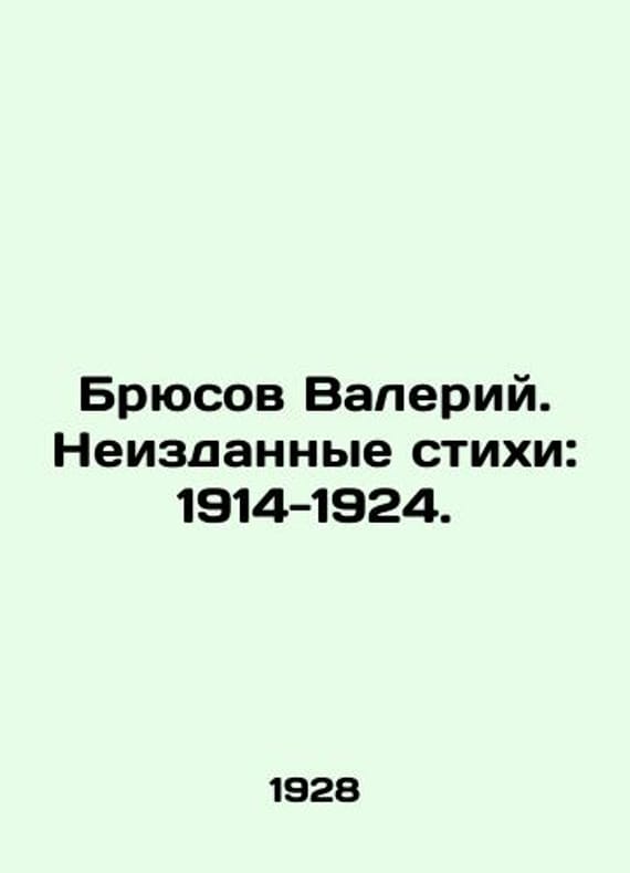 Bruce Valery. Unpublished poems: 1914-1924. In Russian /Bryusov Valeriy. Neizdannye stikhi: 1914-1924. Collected by I.M. Bryusova. Edited by N.S. Ashukin and A.A. Ilyinsky-Blumenau M.-L. GIZ 1928. We have thousands of titles and often several copies of each title may be available. Please feel free to contact us for a detailed description of the copies available. SKUalb5612706a4e57467b.