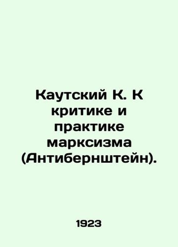 Kautsky K. On the Criticism and Practice of Marxism (AntiBernstein). In Russian /Kautskiy K. K kritike i praktike marksizma (Antibernshteyn). Translation from German by S. A. Alexeev, supplemented by a French edition. Moscow-Petrograd. Gosizdat. 1923. We have thousands of titles and often several copies of each title may be available. Please feel free to contact us for a detailed description of the copies available. SKUalb56804f838fa03dbd.