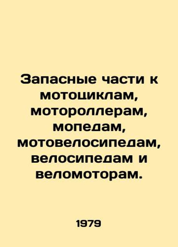 Spare parts for motorcycles, scooters, mopeds, motorcycles, bicycles and bicycle engines. In Russian /Zapasnye chasti k mototsiklam, motorolleram, mopedam, motovelosipedam, velosipedam i velomotoram. Moscow Posltorg 1979. We have thousands of titles and often several copies of each title may be available. Please feel free to contact us for a detailed description of the copies available. SKUalb5680a6f9c2f1795e.