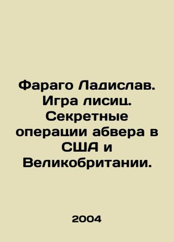 Farago Ladislav. Game of Foxes. Abwers secret operations in the United States and the United Kingdom. In Russian /Farago Ladislav. Igra lisits. Sekretnye operatsii abvera v SShA i Velikobritanii. M. Centpolygraph. 2004. 622s. We have thousands of titles and often several copies of each title may be available. Please feel free to contact us for a detailed description of the copies available. SKUalb56c289e8b83bc028.