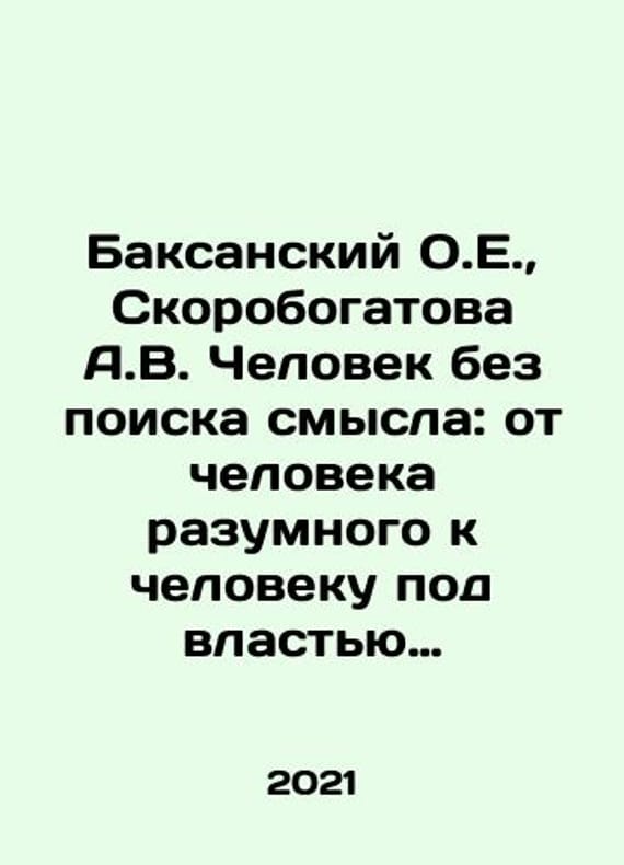 Baksansky O.E., Skorobogatova A.V. A man without a search for meaning: from a reasonable man to a man under the rule of fake. How to learn not to replace true meanings with psychological primitives. In Russian /Baksanskiy O.E., Skorobogatova A.V. Chelovek bez poiska smysla: ot cheloveka razumnogo k cheloveku pod vlastyu feykov. Kak nauchitsya ne zamenyat istinnye smysly psikhologicheskimi primitivami. M.: Lenand, 2021, 312 pp. We have thousands of titles and often several copies of each title may be available. Please feel free to contact us for a detailed description of the copies available. SKUalb56ee69cdafa86c2e.