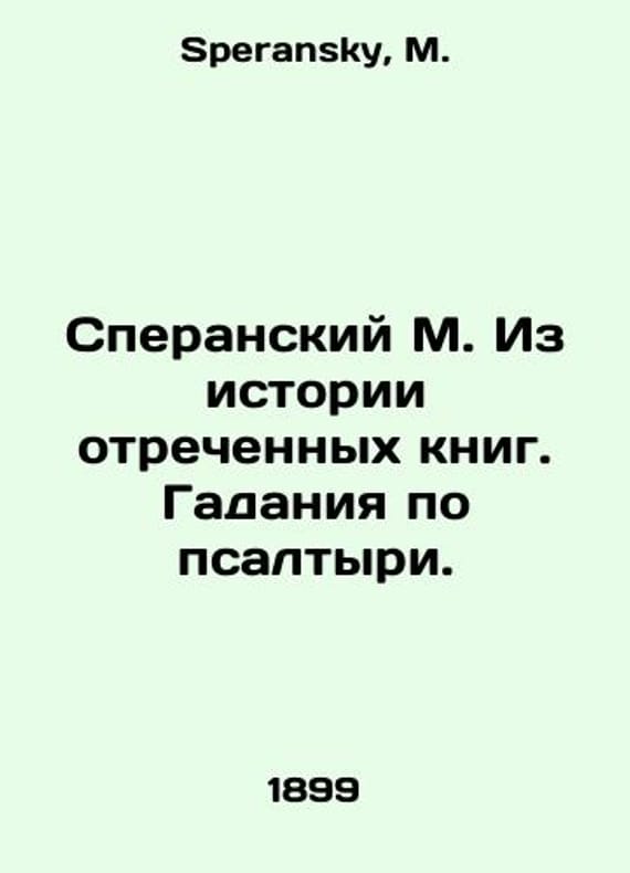 M. Speransky From the History of Abdicated Books. The Divination of Psalms. In Russian /Speranskiy M. Iz istorii otrechennykh knig. Gadaniya po psaltyri. The texts of the divine psalm and related monuments and the material for their explanation were collected and prepared for publication by M. Speransky. Type V.S. Balashev and K 1899. 168s. We have thousands of titles and often several copies of each title may be available. Please feel free to contact us for a detailed description of the copies available. SKUalb57c3b533ae366e98.