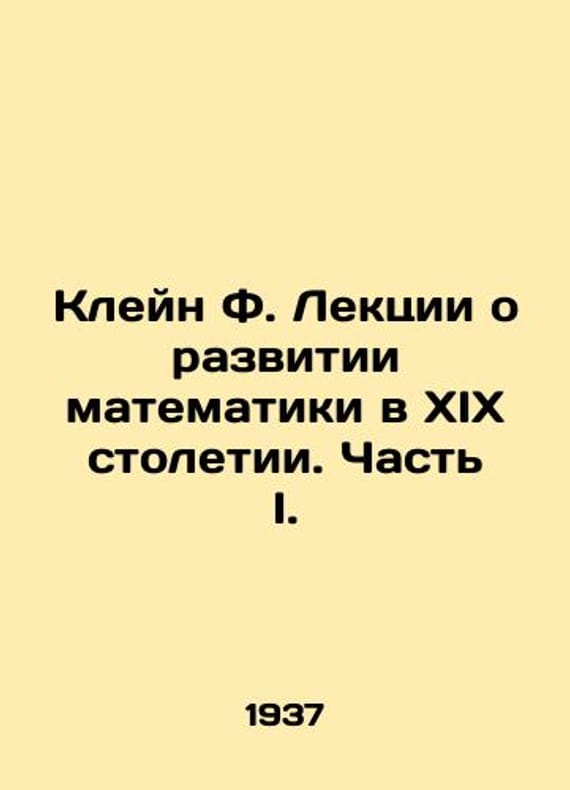 Klein F. Lectures on the development of mathematics in the nineteenth century. Part 1 In Russian (ask us if in doubt)/Kleyn F. Lektsii o razvitii matematiki v XIX stoletii. Chast 1 ONTI NKTP. Main edition of technical and theoretical literature 1937 432 p. SKUalb9e0e688185e75895.