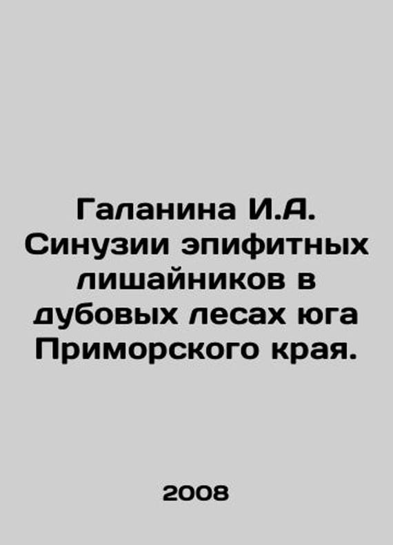 Galanina I.A. Sinuzia of epiphytic lichens in the oak forests of the southern Primorsky Krai. In Russian /Galanina I.A. Sinuzii epifitnykh lishaynikov v dubovykh lesakh yuga Primorskogo kraya.Vladivostok Dalnauka 2008.We have thousands of titles and often several copies of each title may be available. Please feel free to contact us for a detailed description of the copies available. SKUalb57d6b014fa06186e.