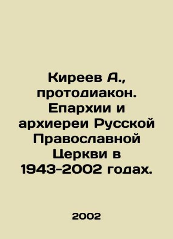A. Kireev, Protodeacon. Dioceses and Bishops of the Russian Orthodox Church in 1943-2002. In Russian /Kireev A., protodiakon. Eparkhii i arkhierei Russkoy Pravoslavnoy Tserkvi v 1943-2002 godakh.M. Entrepreneur Sokolova G.F. 2002.We have thousands of titles and often several copies of each title may be available. Please feel free to contact us for a detailed description of the copies available. SKUalb57e94d11ad76269c.
