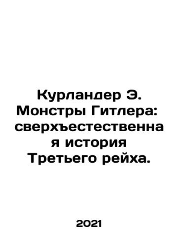Kurlander E. Hitlers Monsters: The Supernatural History of the Third Reich. In Russian /Kurlander E. Monstry Gitlera: sverkhestestvennaya istoriya Tretego reykha. St. Petersburg Vladimir Dal 2021. 642 p. We have thousands of titles and often several copies of each title may be available. Please feel free to contact us for a detailed description of the copies available. SKUalbcd21721d6fcc83ef.