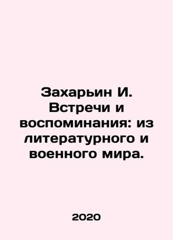 Zahariin I. Meetings and Memories: From the Literary and Military World. In Russian /Zakharin I. Vstrechi i vospominaniya: iz literaturnogo i voennogo mira. Moscow Kuchkovo field 2020. 576 p. We have thousands of titles and often several copies of each title may be available. Please feel free to contact us for a detailed description of the copies available. SKUalb581a05cd7d00ec2c.