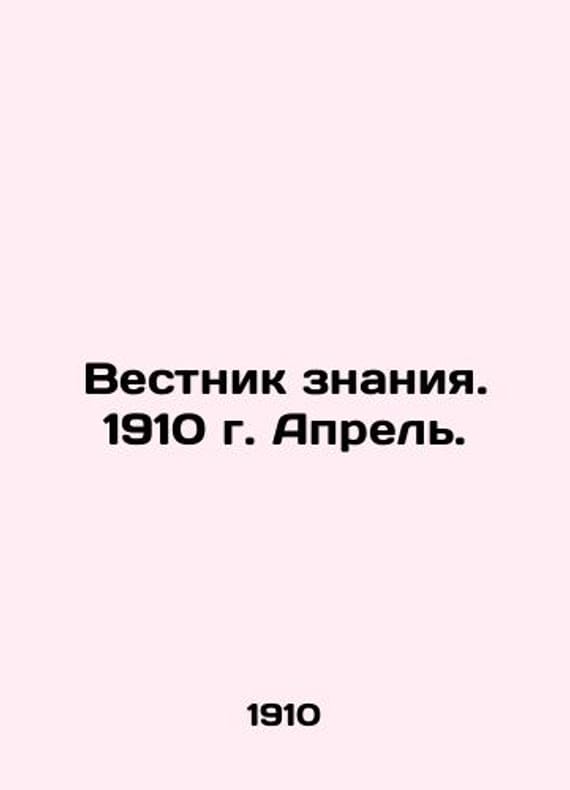 Bulletin of Knowledge. 1910. April. In Russian /Vestnik znaniya. 1910 g. Aprel. Monthly illustrated literary and popular-scientific journal. St. Petersburg Publishing House Vestnik Znaniya (V.V.Bitner). 1910. We have thousands of titles and often several copies of each title may be available. Please feel free to contact us for a detailed description of the copies available. SKUalb5878fd711af554c5.