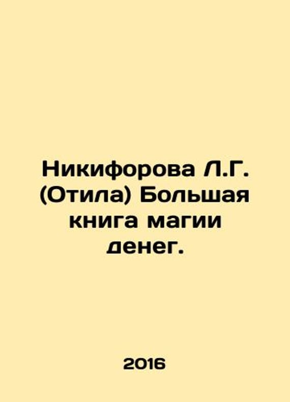 L. G. Nikiforova (Otila) The Big Book of Money Magic. In Russian /Nikiforova L.G. (Otila) Bolshaya kniga magii deneg. M. Veligor 2016. 260 p. We have thousands of titles and often several copies of each title may be available. Please feel free to contact us for a detailed description of the copies available. SKUalb58a95c47b8a6a798.