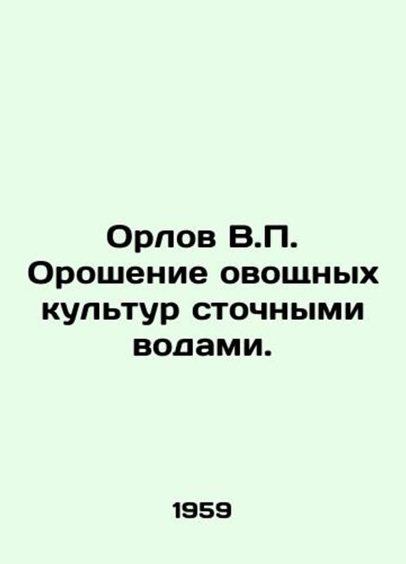 Orlov V.P. Irrigation of vegetable crops with wastewater. In Russian /Orlov V.P. Oroshenie ovoshchnykh kultur stochnymi vodami. On the example of collective farms and state farms in Moscow region. M. Selkhozgiz 1959. 128 p. We have thousands of titles and often several copies of each title may be available. Please feel free to contact us for a detailed description of the copies available. SKUalb58ac4e540b4cbb2e.
