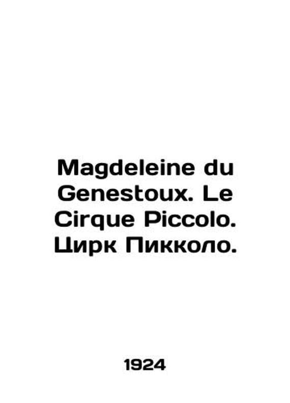 Magdeleine du Genestoux. Le Cirque Piccolo. Cirque Piccolo. In French /Magdeleine du Genestoux. Le Cirque Piccolo. Tsirk Pikkolo. Illustrations by Raymond la Neziere. In French. Paris. Hachette. 1924. 231 p. We have thousands of titles and often several copies of each title may be available. Please feel free to contact us for a detailed description of the copies available. SKUalb58ceb945c1de9c67.