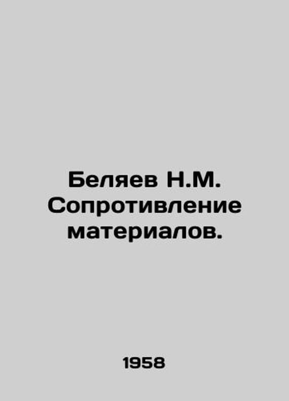 N.M. Belyaev Resistance to Materials. In Russian /Belyaev N.M. Soprotivlenie materialov. Isd11th, reworked MScience 1958g856s. We have thousands of titles and often several copies of each title may be available. Please feel free to contact us for a detailed description of the copies available. SKUalb58d462237c8c7d85.