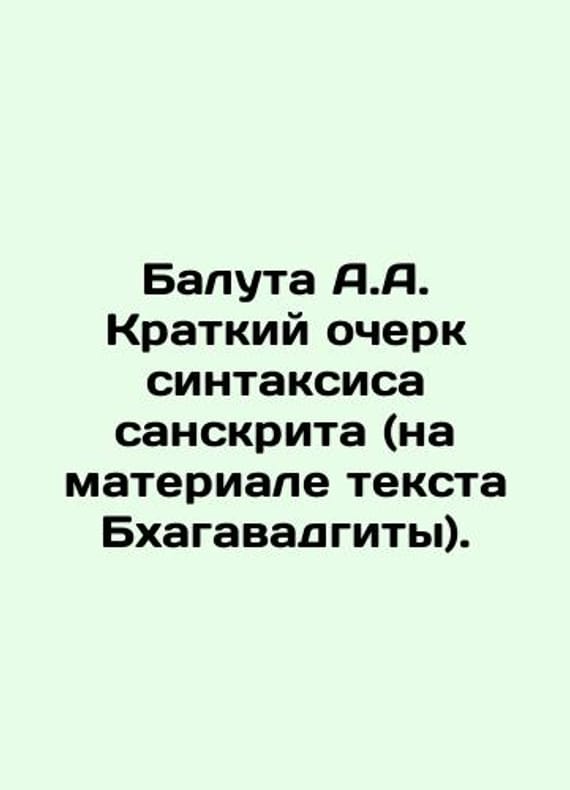 Baluta A.A. Brief outline of Sanskrit syntax (based on Bhagavadgita text). In Russian /Baluta A.A. Kratkiy ocherk sintaksisa sanskrita (na materiale teksta Bkhagavadgity).M. Knowledge, M. 2023, 90 pp.We have thousands of titles and often several copies of each title may be available. Please feel free to contact us for a detailed description of the copies available. SKUalb5913267e7b3dbb0c.