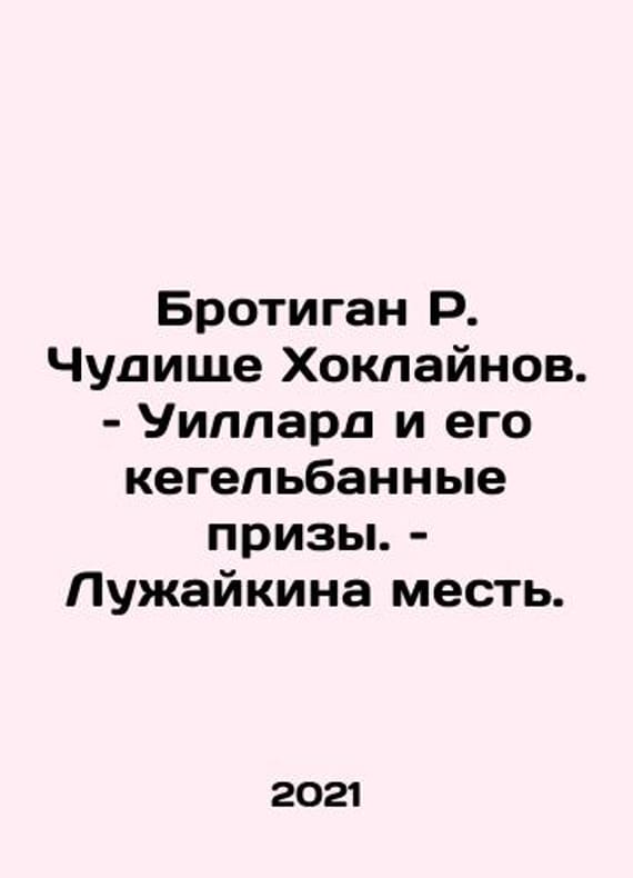 Brotigan R. The Hawkeye Beast. Willard and his mullet prizes. In Russian /Brotigan R. Chudishche Khoklaynov. Uillard i ego kegelbannye prizy. Luzhaykina mest. Translated from English by A.B. Grizunova, M.V. Nemtsov et al. Series: Brotigan Novels: M. Eksmo 2021. We have thousands of titles and often several copies of each title may be available. Please feel free to contact us for a detailed description of the copies available. SKUalb59233e15d7441f93.