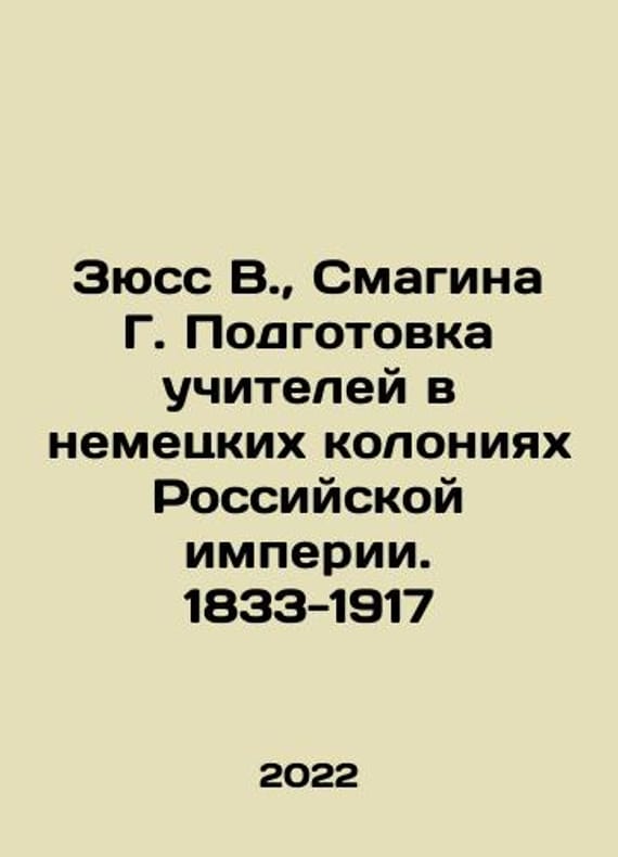Suss V., Smagina G. Teacher Training in the German Colonies of the Russian Empire. 1833-1917 In Russian /Zyuss V., Smagina G. Podgotovka uchiteley v nemetskikh koloniyakh Rossiyskoy imperii. 1833-1917 SPb Rostock 2022. 328s.We have thousands of titles and often several copies of each title may be available. Please feel free to contact us for a detailed description of the copies available.SKUalb06815e2e981c9bf8.