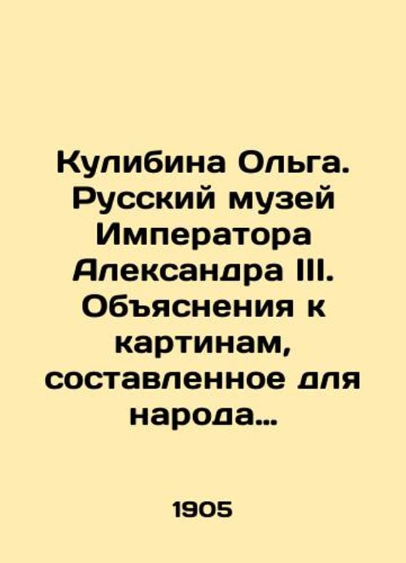 Olga Kulibina. Russian Museum of the Emperor Alexander III. Explanations to the paintings made for the people by Olga Kulibina. In Russian /Kulibina Olga. Russkiy muzey Imperatora Aleksandra III. Obyasneniya k kartinam, sostavlennoe dlya naroda Olgoy Kulibinoy. St. Petersburg. Montvide Printing House. 1905. We have thousands of titles and often several copies of each title may be available. Please feel free to contact us for a detailed description of the copies available. SKUalb594aeba2d44ebb12.