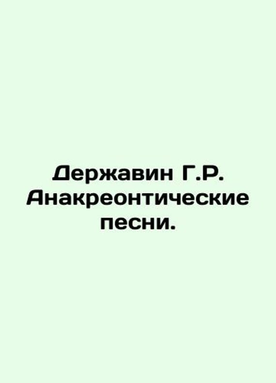 The holder H.R. Anacreontic songs. In Russian /Derzhavin G.R. Anakreonticheskie pesni. Series: Literary Monuments. The publication was prepared by G. Makogonenko, G.N. Ionin, E.N. Petrova. M., Nauka, 1987 (1986), 472s. We have thousands of titles and often several copies of each title may be available. Please feel free to contact us for a detailed description of the copies available. SKUalb595b2fc4614468b1.