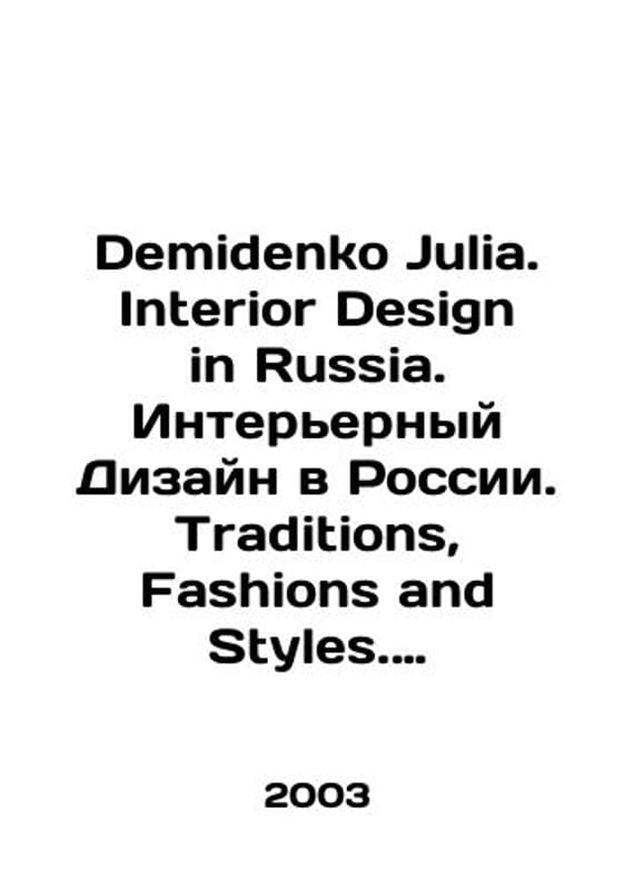 Demdenko Julia. Interior Design in Russia. Interior Design in Russia. Traditions, Fashions and Styles. Tradition, Fashion and Style. In Russian /Demidenko Julia. Interior Design in Russia. Interernyy Dizayn v Rossii. Traditions, Fashions and Styles. Traditsii, Mody i Stili. St. Petersburg. Aurora 2003. 255 p. We have thousands of titles and often several copies of each title may be available. Please feel free to contact us for a detailed description of the copies available. SKUalb596cf78f403683cb.