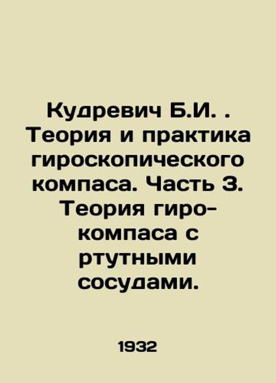 Kudrevich B.I. Theory and practice of gyroscopic compass. Part 3. Theory of gyro-compass with mercury vessels. In Russian /Kudrevich B.I. Teoriya i praktika giroskopicheskogo kompasa. Chast 3. Teoriya giro-kompasa s rtutnymi sosudami. Leningrad Edition of the Hydrographic Directorate. 1932. We have thousands of titles and often several copies of each title may be available. Please feel free to contact us for a detailed description of the copies available. SKUalb5988dd4e2ac731dc.