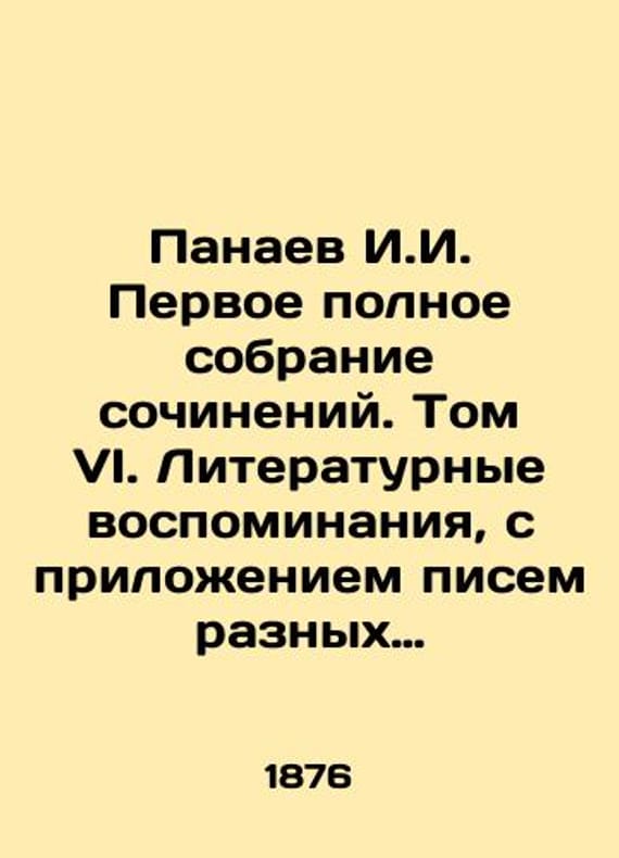 Panaev I.I. First complete collection of essays. Volume VI. Literary memoirs with the attachment of letters from different persons. /Panaev I.I. Pervoe polnoe sobranie sochineniy. Tom VI. Literaturnye vospominaniya s prilozheniem pisem raznykh lits. Literary memoirs of 1830-1847. Memories of Belinsky. Funeral of Dobrolyubov. Martynov obituary. Rael in St. Petersburg. Letters We have thousands of titles and often several copies of each title may be available. Please feel free to contact us for a detailed description of the copies available. SKUalb59b0a9cf782325e0