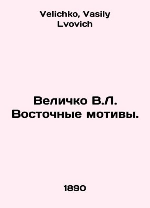 Velichko V.L. Oriental Motifs. In Russian /Velichko V.L. Vostochnye motivy. St. Petersburg Typography and Phototyping by V.I.Shtein. 1890. 246s,. We have thousands of titles and often several copies of each title may be available. Please feel free to contact us for a detailed description of the copies available. SKUalb59cc95f1009926f0.