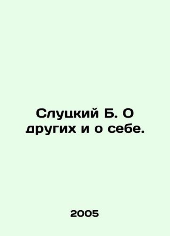 B. Slutsky About Others and Myself. In Russian /Slutskiy B. O drugikh i o sebe. My 20th Century by M. Wagrius 2005 series. We have thousands of titles and often several copies of each title may be available. Please feel free to contact us for a detailed description of the copies available. SKUalb59f068b59ebe001b.