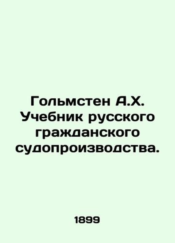 Golmsten A.H. Textbook of Russian Civil Proceedings. In Russian (ask us if in doubt)/Golmsten A.Kh. Uchebnik russkogo grazhdanskogo sudoproizvodstva. Short description: In Russian (ask us if in doubt).1899 Adolf Christianovich Golmsten (1848-1920) is a well-known Russian lawyer professor of the Department of Civil Law and Judicial Procedure first Dean of the Faculty of Law of St. Petersburg University later Rector of Imperial St. Petersburg University We have thousands of titles and often several copies of each title may be available. Please feel free to contact us for a detailed description of the copies available. SKUalb59f8c0dee2c9dfb7