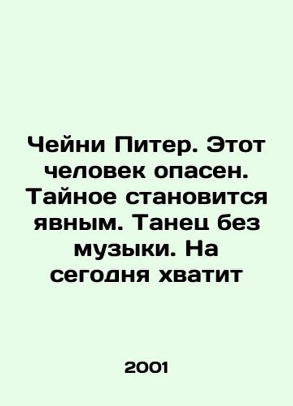 Peter Cheney. This man is dangerous. Secret becomes apparent. Dance without music. Enough is enough. In Russian /Cheyni Piter. Etot chelovek opasen. Taynoe stanovitsya yavnym. Tanets bez muzyki. Na segodnya khvatit The series: The worlds best detective M. Ripoll Classics 2001.We have thousands of titles and often several copies of each title may be available. Please feel free to contact us for a detailed description of the copies available. SKUalb5a2b63a5395c07f8.