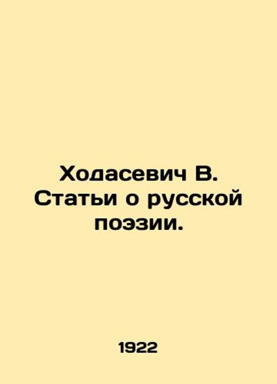 Khodasevich V. Articles on Russian Poetry. In Russian /Khodasevich V. Stati o russkoy poezii. St. Petersburg Epoch. 1922. We have thousands of titles and often several copies of each title may be available. Please feel free to contact us for a detailed description of the copies available. SKUalb5a5d11ce8308cc4c.